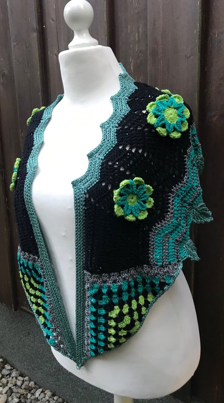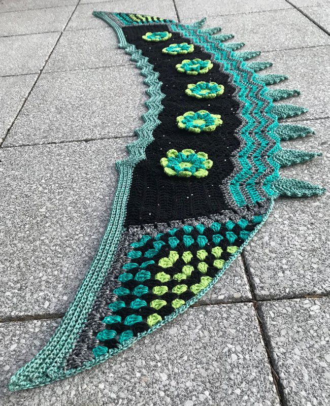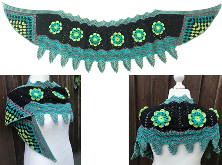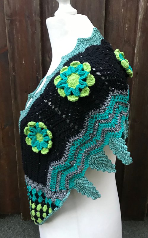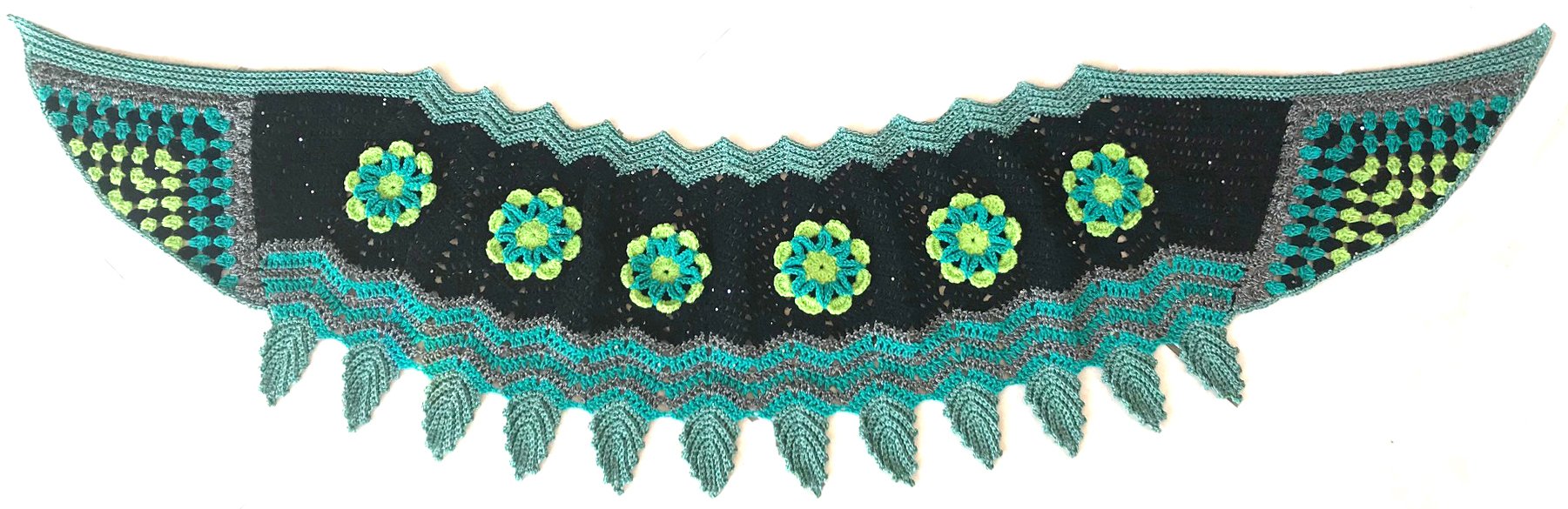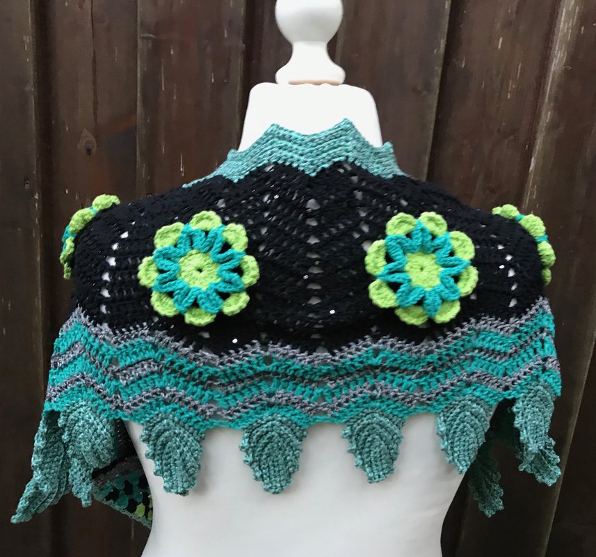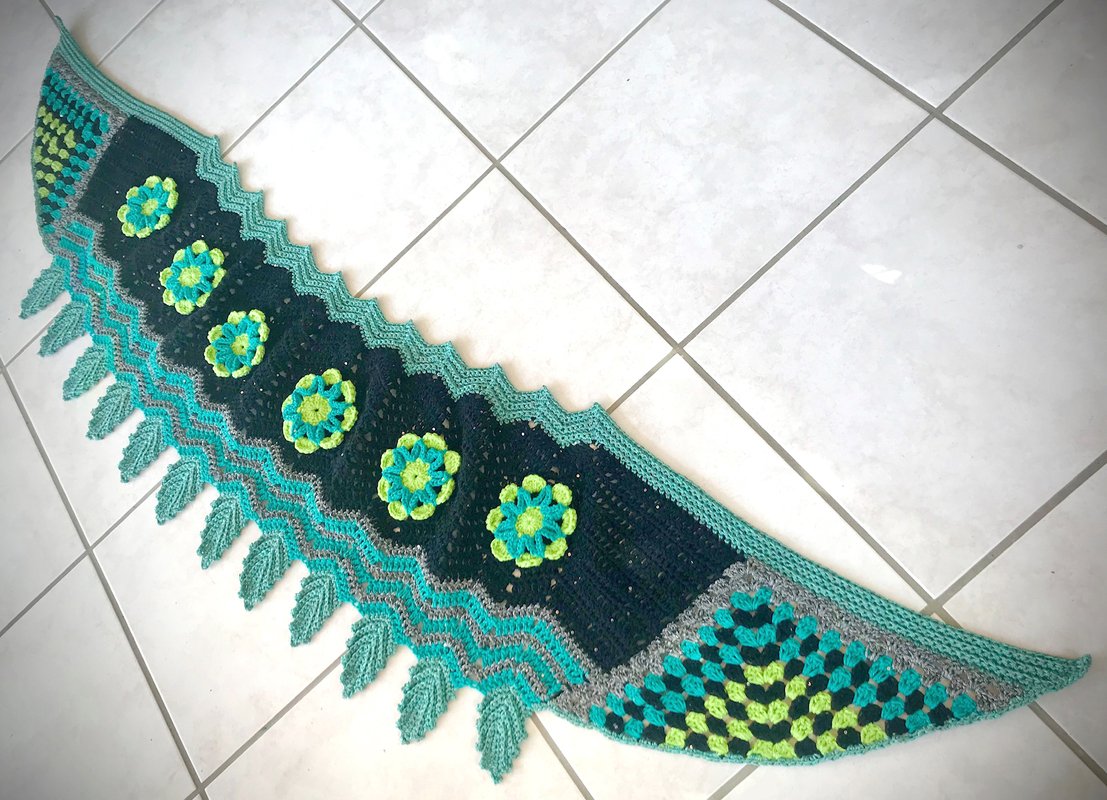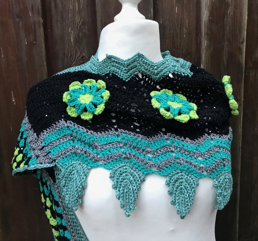 Tuch/Stola mit Blätter...eine aussergewöhnlich Arbeit..aber nicht SO kompliziert, wie sie vielleicht aussieht. Das schöne Projekt ist eine Mischung zwischen Tuch & Stola