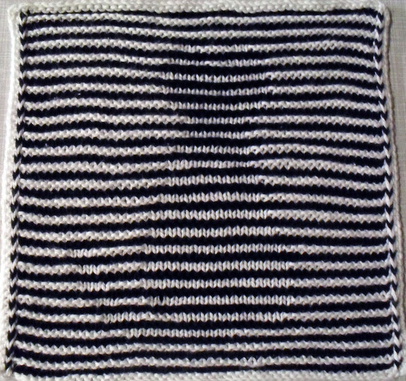 Benötigt wird Baumwollgarn in zwei Farben, gesamt ca. 40 Gramm, Nadelstärke 2 1/2 oder 3, je nach Material und Strickweise, es muß sehr fest gestrickt werden!
