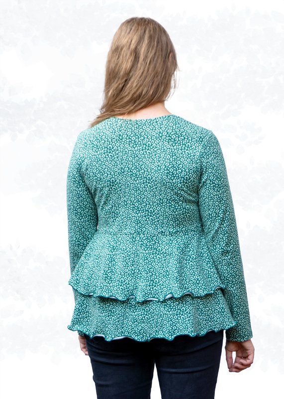 „Leonie“ wird aus dehnbarem Jersey genäht und sitzt so bequem am Körper. Das Modell lässt sich auch als Cropshirt nähen. Hierfür wird das kurze Saumteil an das Oberteil genäht. Außerdem kannst du aus „Leonie“ elegante Reizwäsche nähen, indem du für die Ärmel und das Saumteil dehnbare Spitze wählst.