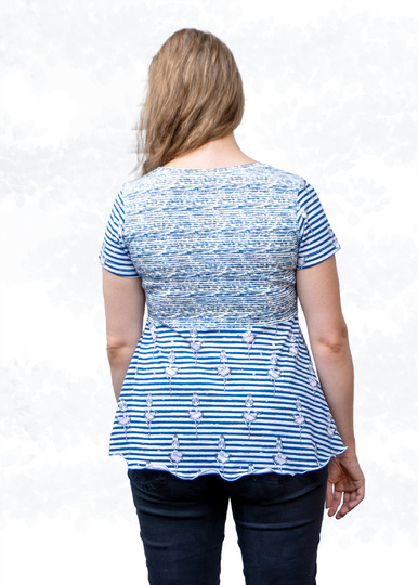 Die Teilung des Shirts verläuft ungefähr unter der Brust, sodass du das Shirt auch perfekt zu Beginn der Schwangerschaft tragen kannst. Hierfür ist ein Add-on im Schnittmuster enthalten.