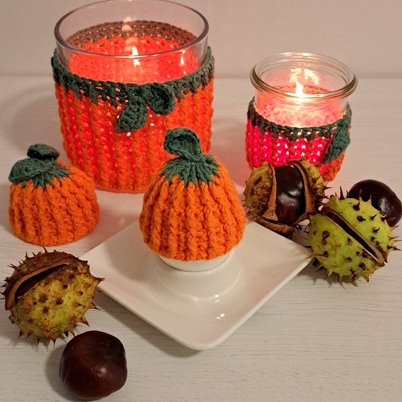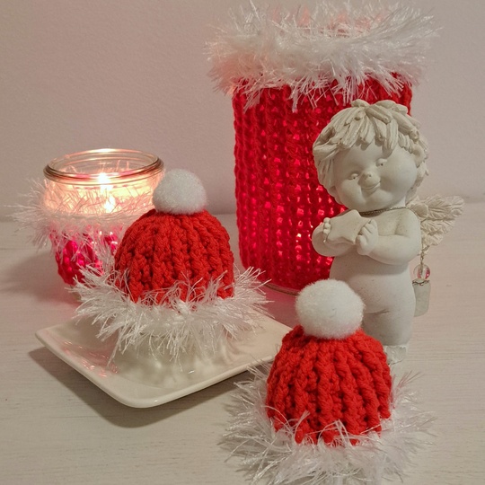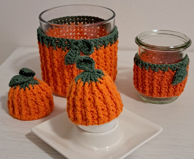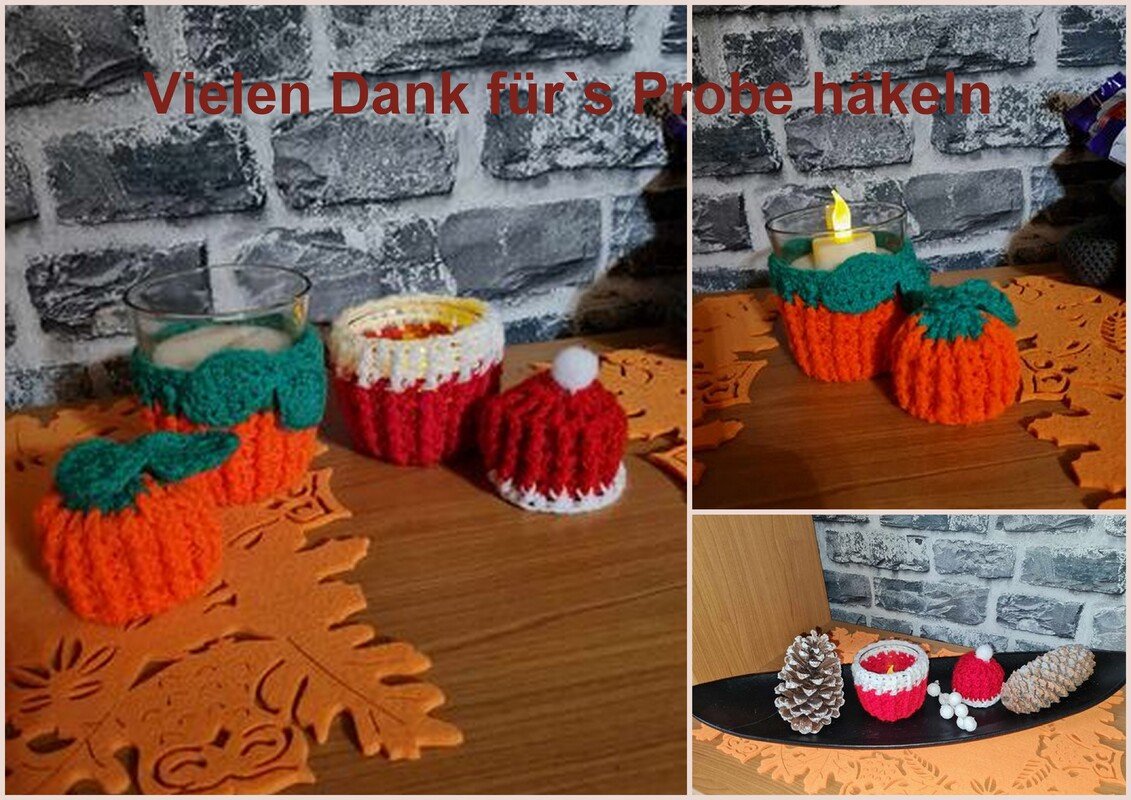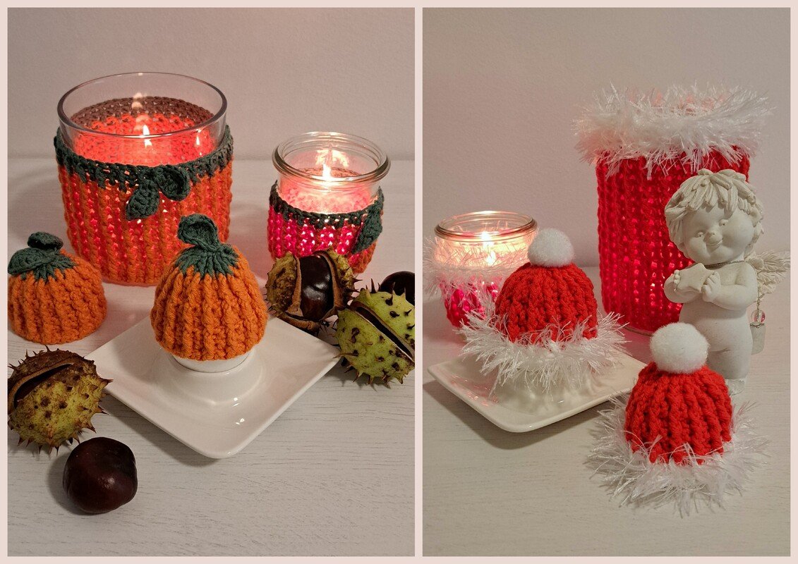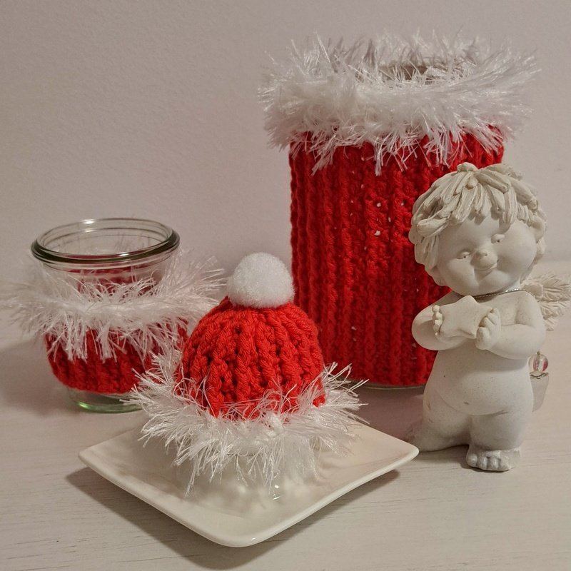 Egal ob Einmachgläser als Vase, Teelichtgläser für die festliche Beleuchtung, festliche Dessertgläser oder als Eierwärmer. Alles wird nach dem gleichen Muster gearbeitet und dementsprechend der Größe angepasst.