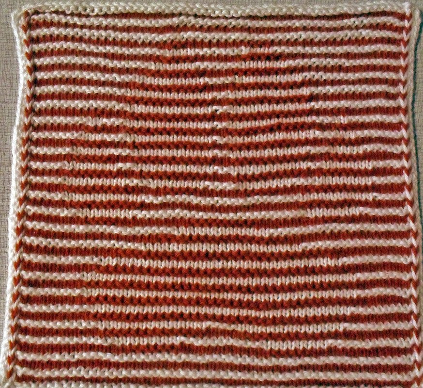 Benötigt wird Baumwollgarn in zwei Farben, gesamt ca. 40 Gramm, Nadelstärke 2 1/2 oder 3, je nach Material und Strickweise, es muß sehr fest gestrickt werden!
