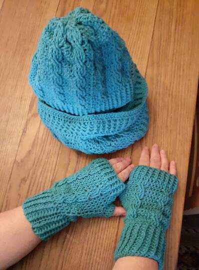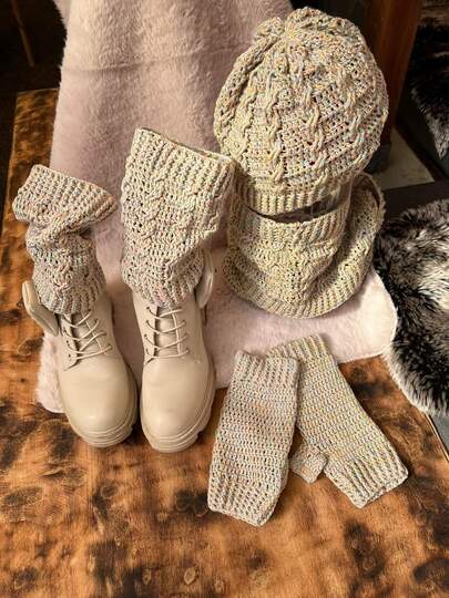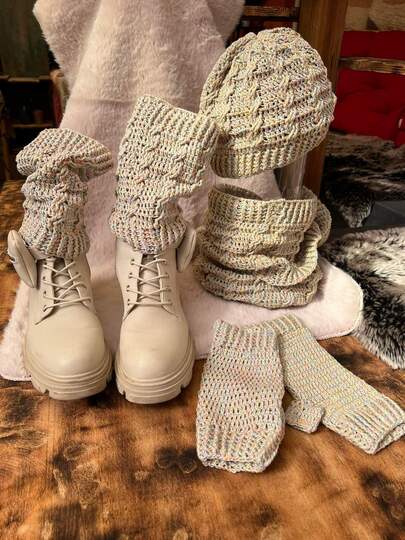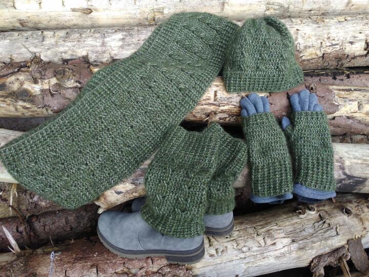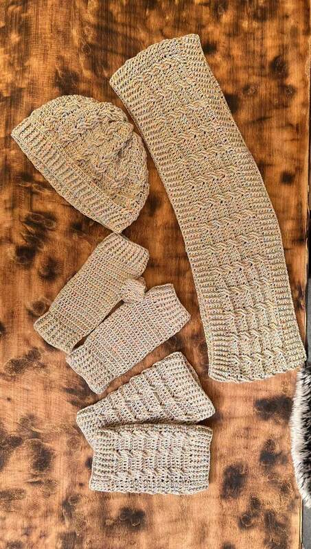 Du bekommst hier eine Anleitung für ein gehäkeltes Winterset mit einem wunderschönen kleinen Zopfmuster, bestehend aus Mütze, Stirnband, Loop, Beinstulpen und Bettlerhandschuhen. Neben der schriftlichen Anleitung und Häkelschriften sind genaue Erklärungen für die etwas kniffligeren Maschen enthalten sowie eine Fotostrecke für den Anfang.