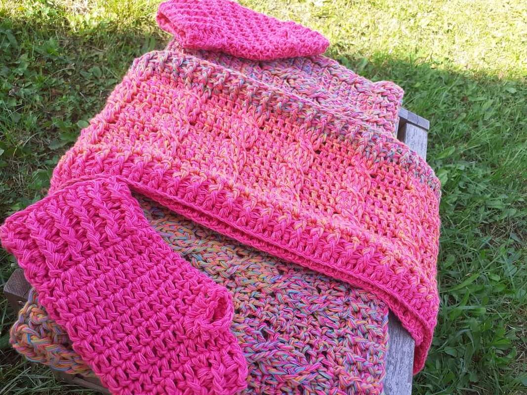 Es kann mit jedem gewünschten Garn ab Nadelstärke 3-4 gehäkelt werden.