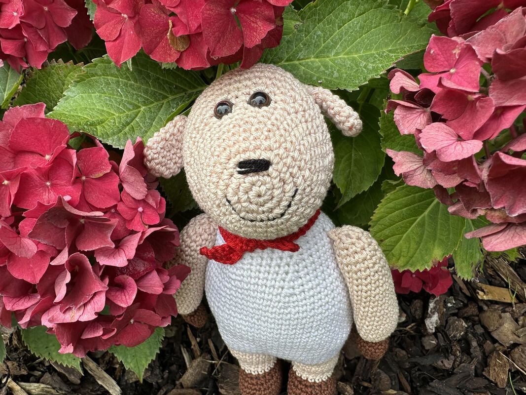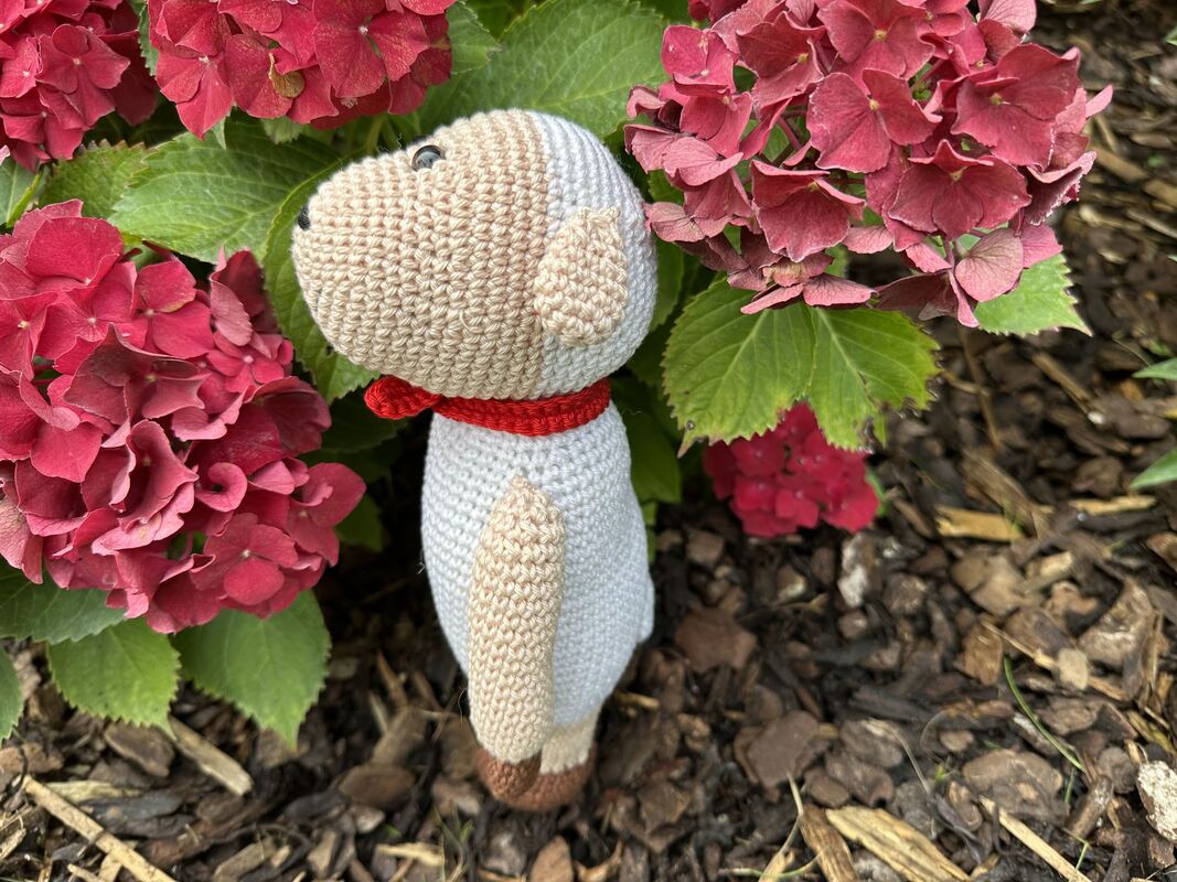 Mit dem empfohlenen Material wird Maggie Mäh etwa 25 cm groß – die perfekte Größe für kleine Kinderhände oder zum Dekorieren im Kinderzimmer.
