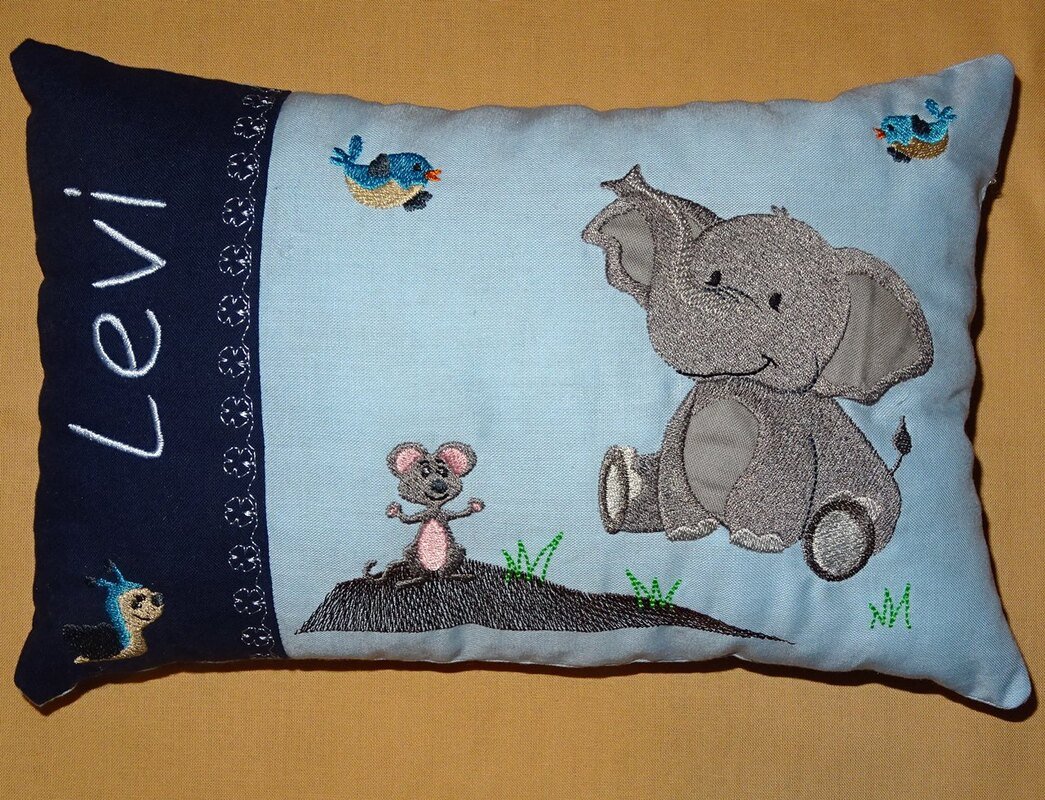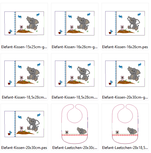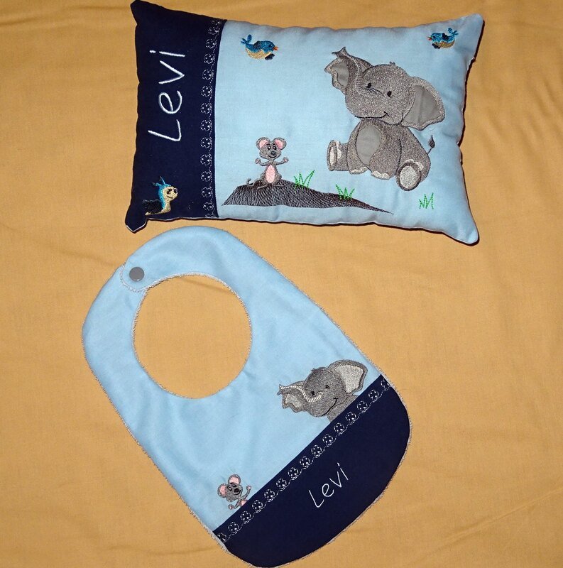 Stickdatei - Kissen und Lätzchen SET ITH - Elefant mit Maus