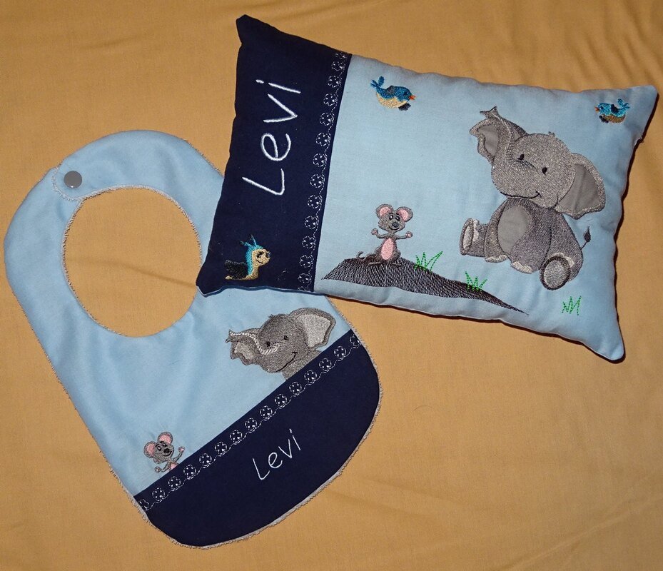 ACHTUNG: Es handelt sich hier nicht um fertige Lätzchen oder Kissen sondern um Stickdateien für eine Stickmaschine. Um die Stickerei herzustellen wird also eine Stickmaschine benötigt!
