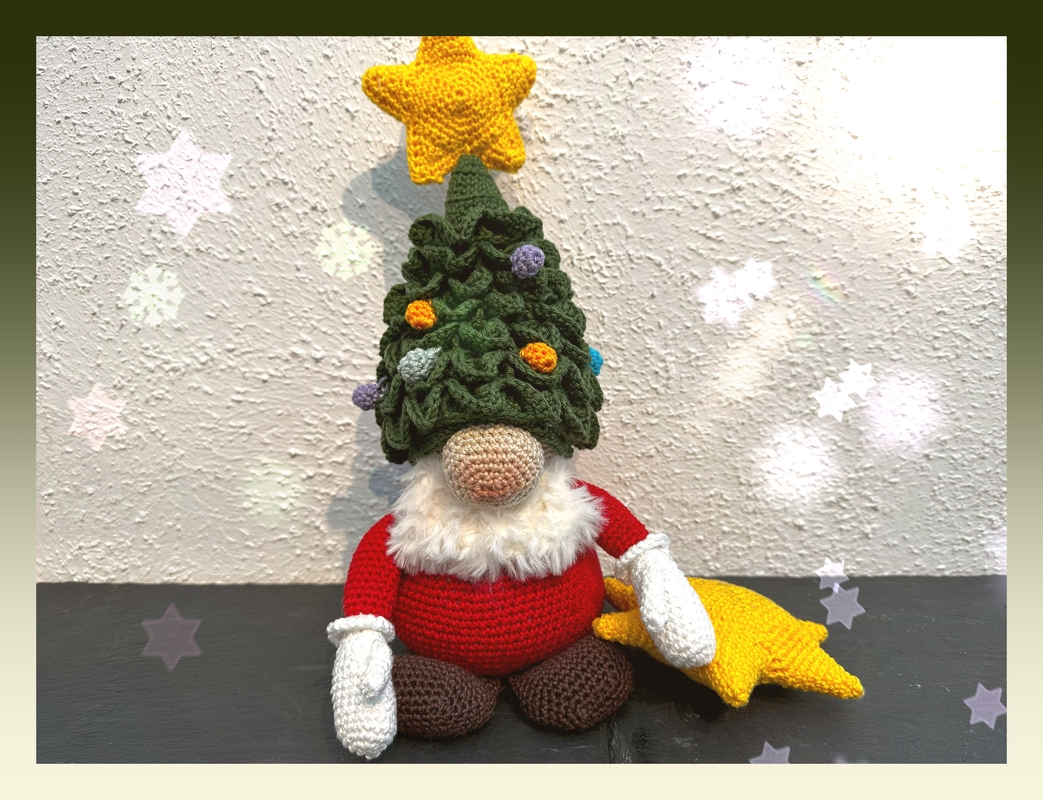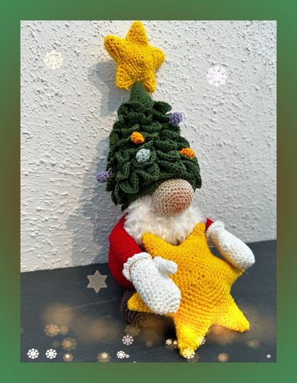 Ihr kauf hier eine Anleitung zum nacharbeiten des Weihnachtswichtels mit Tannenbaumhut und mit Stern.