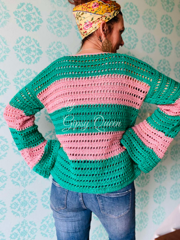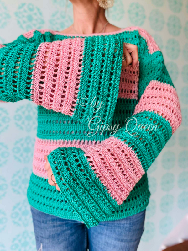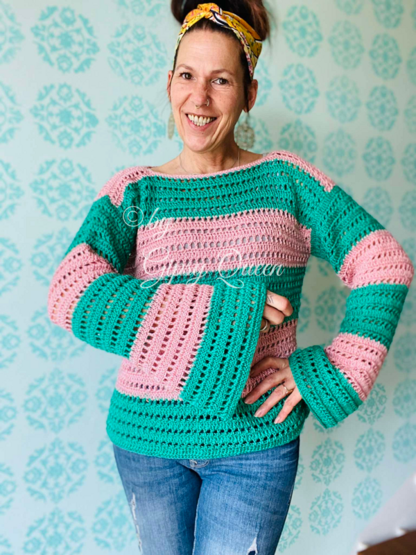 Der Pullover nach dieser Anleitung ist in Größe 36/38 und 40/42 beschrieben.