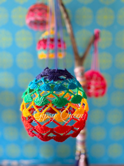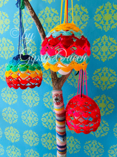 Ein fröhlicher Lampenschirm! Dieser ist schnell gehäkelt und Du kannst Deine Wollreste verwenden. Eine hübsche Beleuchtung für dein Zuhause oder auch für eine überdachte Terrasse oder Balkon.