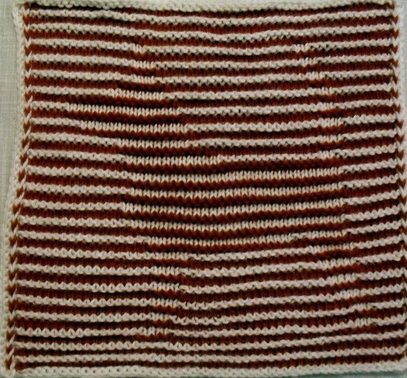 Benötigt wird Baumwollgarn in zwei Farben, gesamt ca. 40 Gramm, Nadelstärke 2 1/2 oder 3, je nach Material und Strickweise, es muß sehr fest gestrickt werden!