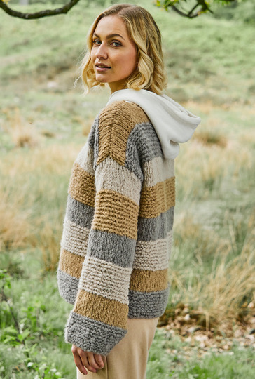Mit seiner geraden Form ist dieser Pullover die ideale Wahl – auch Strickneulinge kommen mit diesem einfachem Blockstreifenmuster sicher ans Ziel. Das flauschige Garn, ermöglicht ein einfaches Strickerlebnis mit seinen Maschen glatt rechts oder kraus rechts gestrickt. Dieser Pulli bietet nicht nur einen perfekten Look, sondern ist auch äußerst lässig zu tragen und passt zu vielerlei Outfits. Die Kombination aus Einfachheit und Eleganz macht ihn zu einem vielseitigen Kleidungsstück, das in keiner Garderobe fehlen sollte.