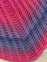 Es ist ein flaches Tuch, das durch den Maschenmix aus Stäbchen, vorderen und hinteren Reliefstäbchen eine plastische Optik mit sich bringt. Es ist anfänger- und fernsehetrauglich durch den Rapport, der sich nur über 2 Reihen erstreckt.