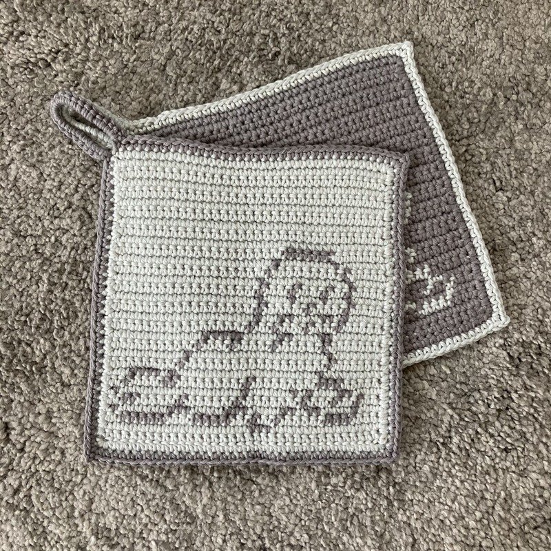Diese Topflappen sind der Klassiker unter den gehäkelten Topflappen. Sie schützen die Hände nicht nur vor z.B. zu heißen Topfgriffen, sondern sie verschönern auch jede Küche. Gleichzeitig können sie auch als Untersetzer verwendet werden.