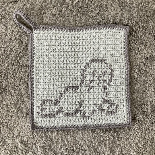 Mit der von mir angegebenen Wolle hat der Topflappen eine Größe von ca 20cm x 20cm.