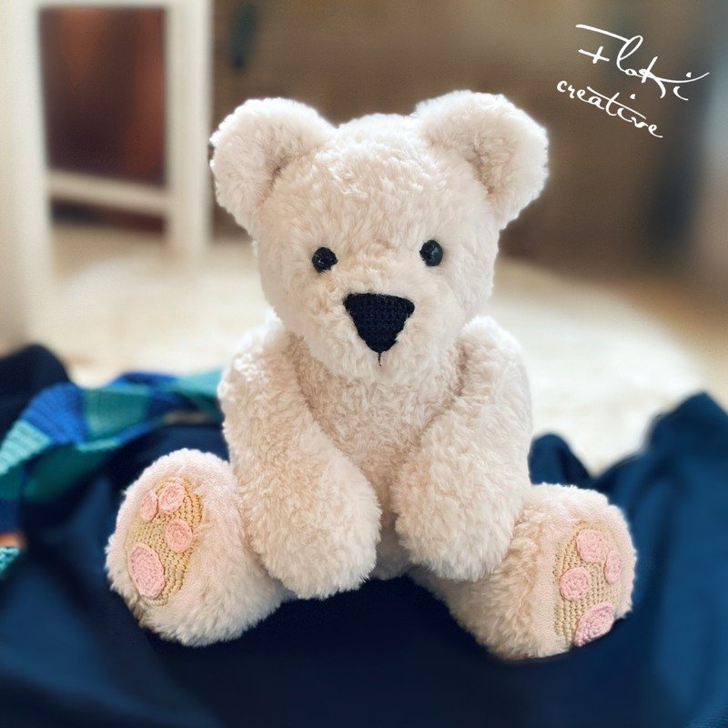 Das ist "Pia" ein Eisbär als Häkelanleitung auf deutsch. Du kannst natürlich auch ein Braunbär daraus zaubern :).