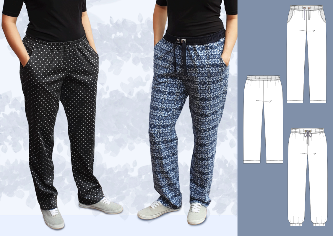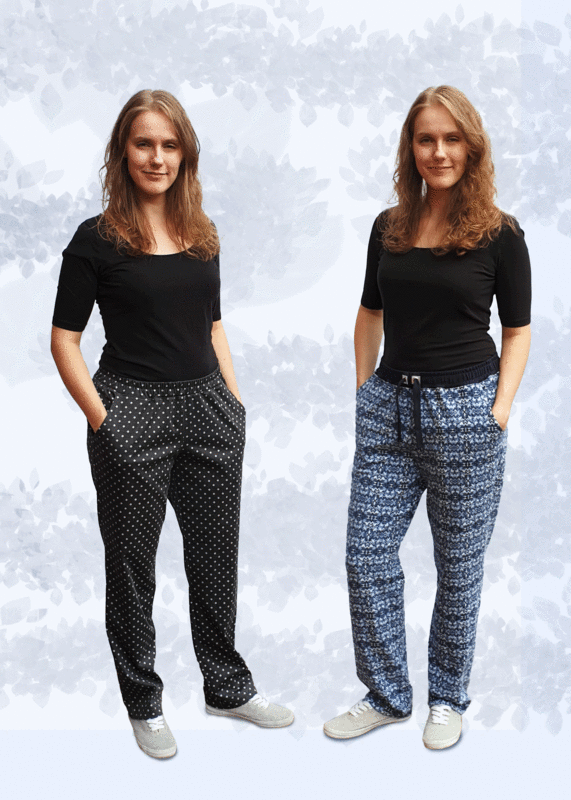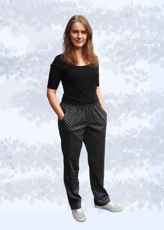 The best thing about the "Mira" leisure pants is that you can customize them to your preferences. You can sew them either in full length or as trendy 7/8 pants. The hems can either fall loosely around the ankles or be gathered with an elastic band for a modern look. Additionally, you have the option to add slightly rounded pockets to give the pants a special accent and provide space for your small belongings.