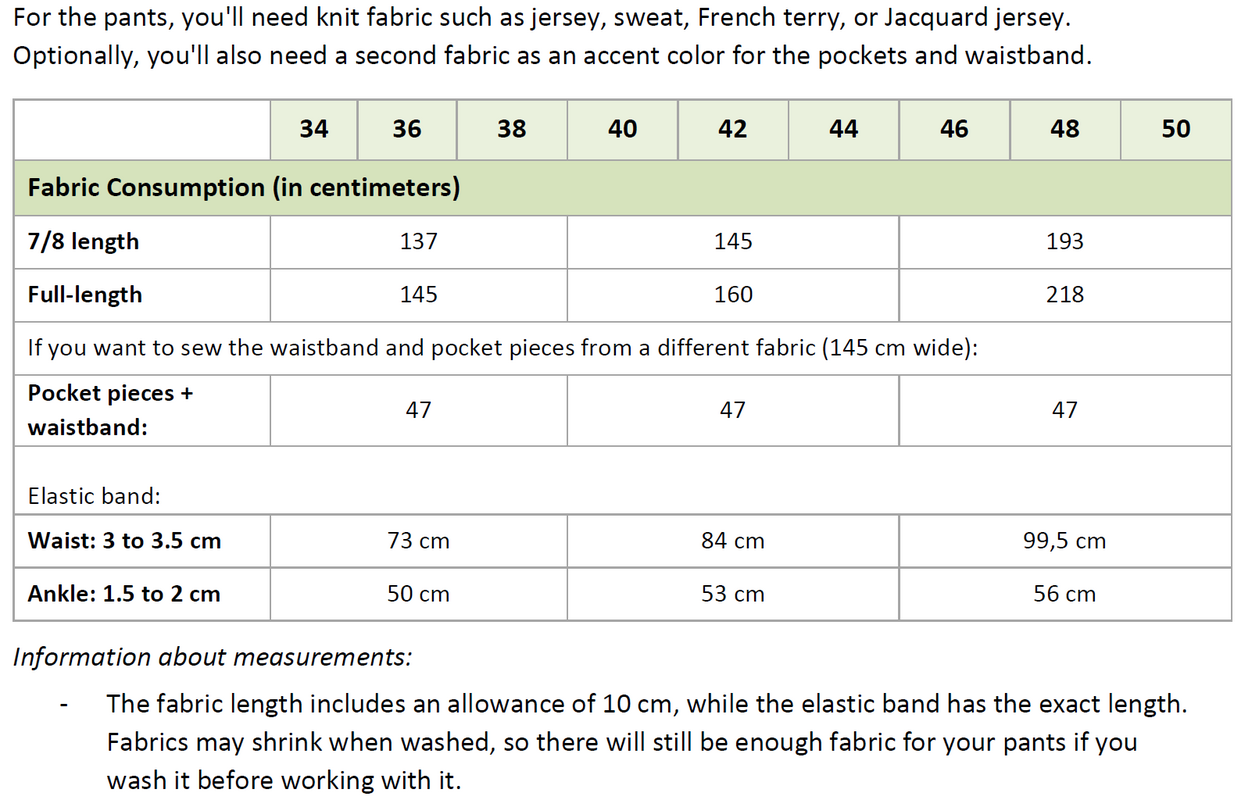 To make it easier for you to get started, the "Mira" pattern includes a brief introduction to sewing with jersey. So, you don't have to worry if you don't have much experience with this fabric. With the detailed, step-by-step instructions and practical tips, you'll be well-prepared to sew your own "Mira" sweatpants.