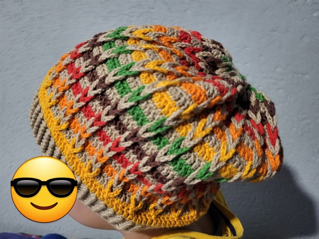 Diese Mütze lässt sich super einfach in allen Größen häkeln. Weil es nur zwei Muster gibt (Bündchen und oberer Teil), fällt auch das Maschenzählen fast ganz weg. Somit ist sie für Jung und Alt geeignet.