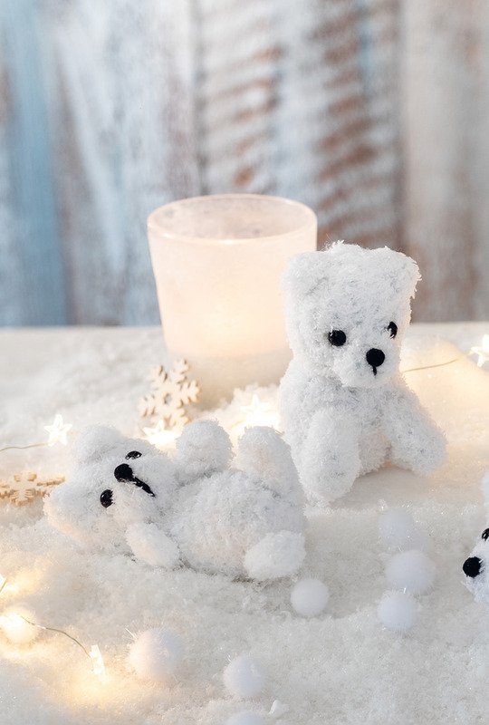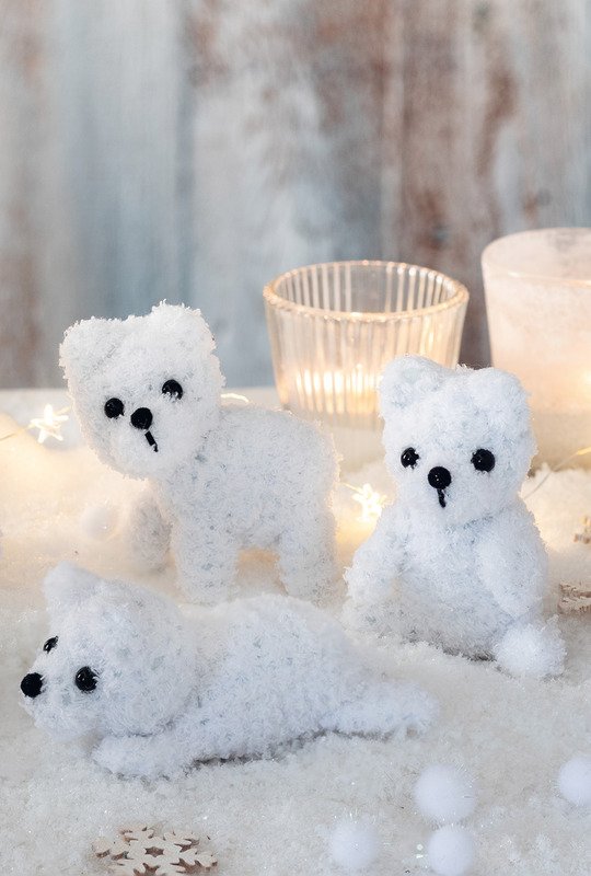 Diese Dekoszene als Tischschmuck für die Winterzeit zieht alle Blicke auf sich! Die niedlichen Eisbären im Miniformat sind schnell und mit nur wenig Materialaufwand gestrickt, auch Anfänger können sie dank der ausführlichen Anleitung problemlos nacharbeiten. Das perfekte Projekt für zwischendurch!