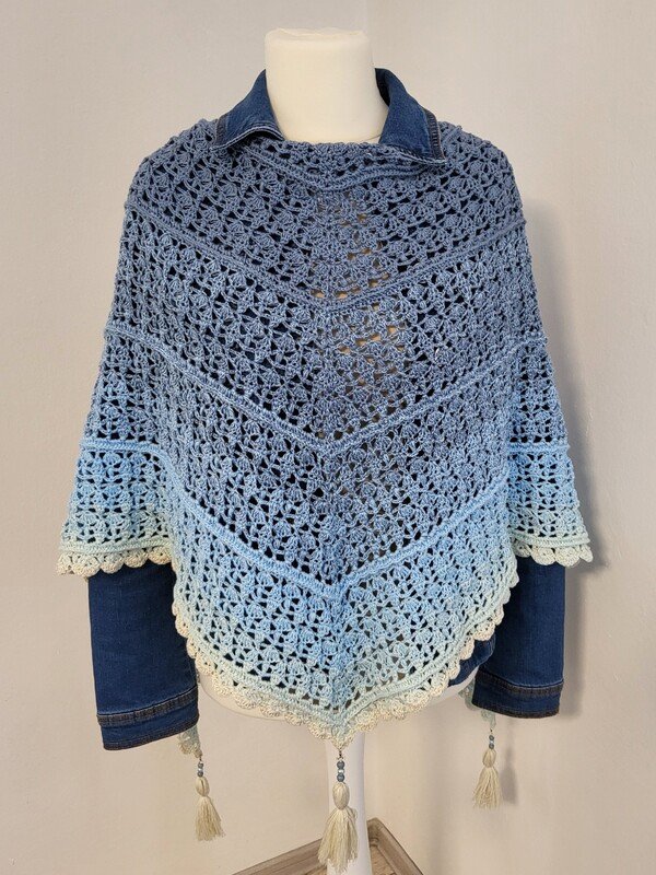 Du kannst das Tuch mit beliebigem Garn häkeln. Die benötigte Garnmenge ist abhängig von der Wunschgröße, dem gewählten Material und deinem persönlichen Häkelstil. Bei Farbverlaufsgarn empfehle ich je nach gewünschter Tuchgröße eine Lauflänge zwischen 1100 und 1300 m 3- oder 4-fädig.