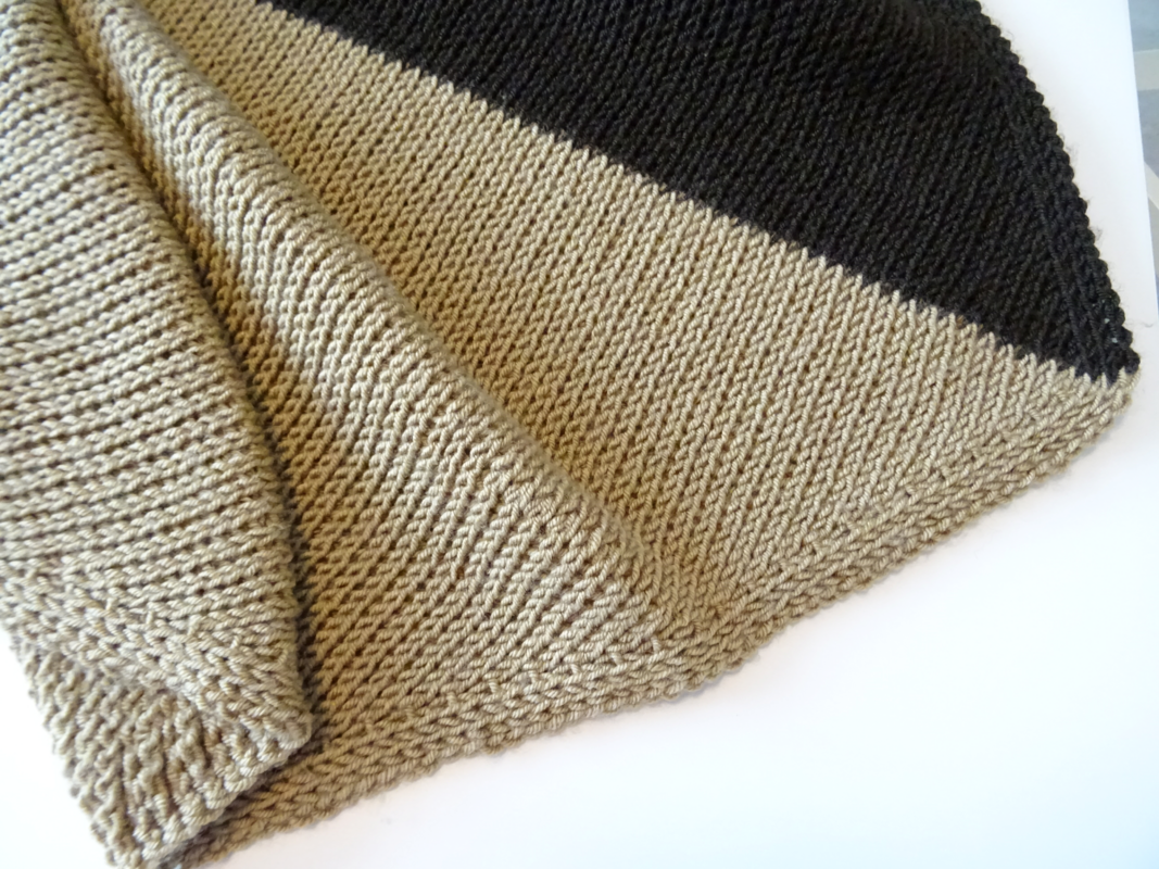 Ich habe für dieses Tuch die Tunesische Häkeltechnik gewählt. Sie läßt sich sehr gut arbeiten, sieht aus wie gestrickt und verspricht ein sauberes Maschenbild sowie Randmaschen, die sich wirklich sehen lassen können. Das Tuch wird von einer Spitze zur anderen Spitze gearbeitet und lediglich durch einen einzigen Farbwechel in der Mitte des Tuches unterbrochen. Das verspricht ein ganz entspanntes Arbeiten.