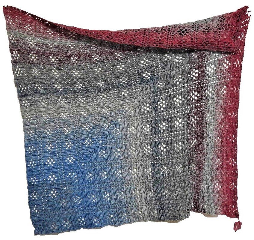 Die Anleitung selbst wurde mit 1000 Meter 4-fädigen Garn und 3er Nadel vorgehäkelt und ergibt so eine Decke von 88 x 88 cm Größe. Mit 500 Meter hat sie ca 63 x 63 cm