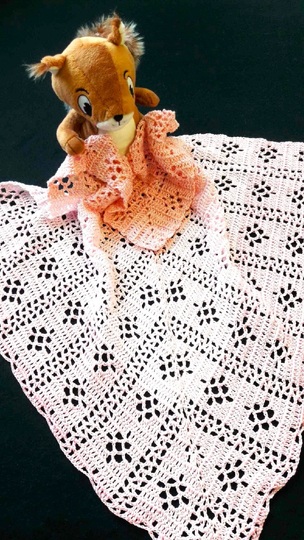 Das Muster und die Form bietet sich nicht nur als Babydecke an, sondern auch als Tagesdecke für