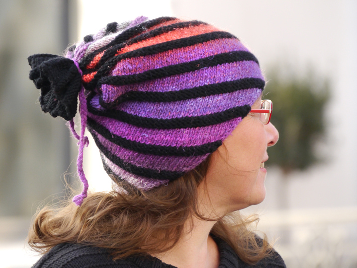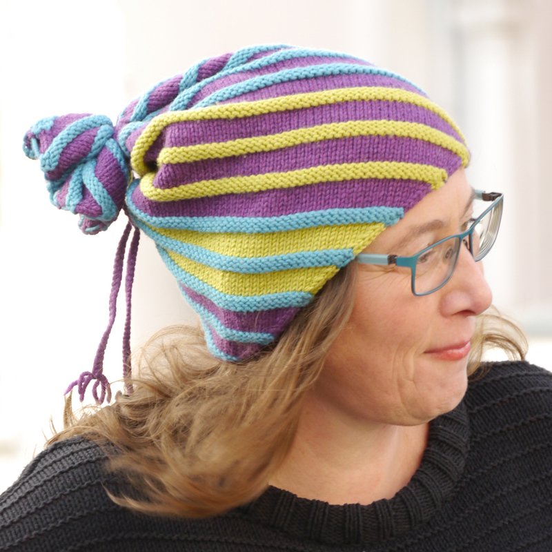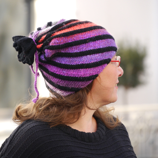 Super einfach zu stricken, aber mit Wow-Effekt – das ist die Mütze „Swooosh“. Ich stricke sie schon seit Jahren für mich und als Geschenk, denn sie passt immer und ist problemlos an jede Kopfgröße und Garnstärke anzupassen. Ich habe die Mütze im Laufe der Zeit natürlich immer weiter verfeinert: Es gibt keine Spannfäden an der Kante durch den Farbwechsel, und die Rosette, die statt eines Pompons die Mütze krönt, faltet sich dank eines Knick-Tricks in die richtige Richtung.