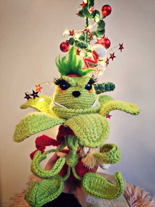 Lange habe ich überlegt wie ich den Grinch in meiner Art umsetzen und häkeln kann und das ist daraus geworden.