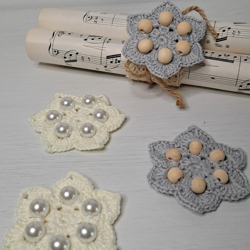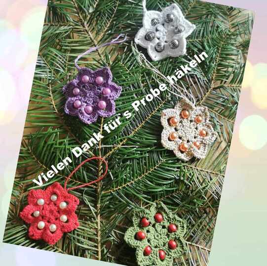 Die Sterne werden mit Luftmaschen, festen Maschen, Stäbchen und zusammen abgemaschten Stäbchen gehäkelt.