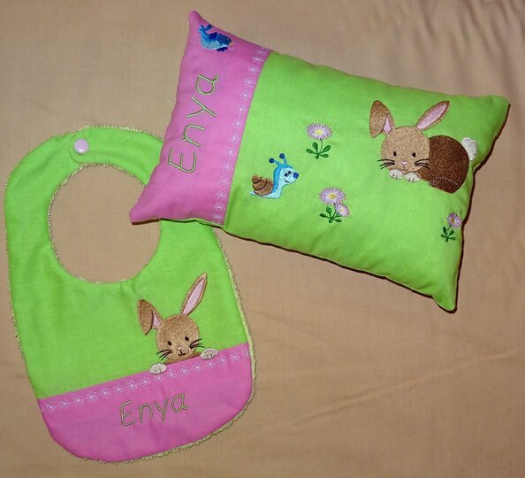 Stickdatei - Kissen und Lätzchen SET ITH - Hase mit Schnecke