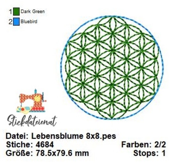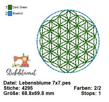 Diese Stickdatei der "Blume des Lebens" ist ein wunderschönes und bedeutungsvolles Design, das in 4 verschiedenen, kleinen (5cm, 6cm, 7cm, 8cm Durchmesser) Größen geliefert wird.