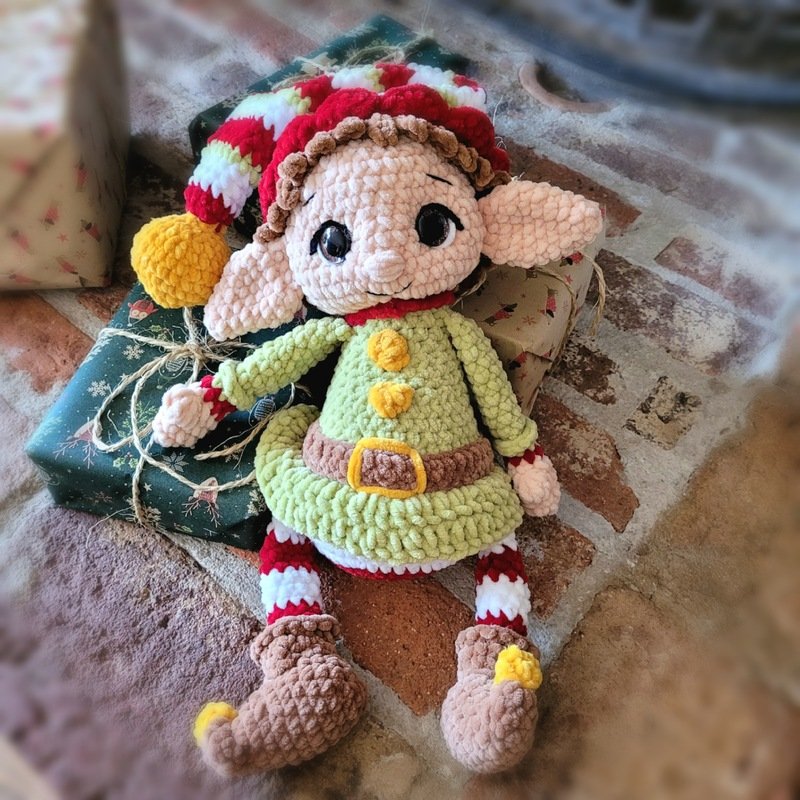 Mit dieser Anleitung lässt sich dieser super süße Weihnachtself nach häkeln.