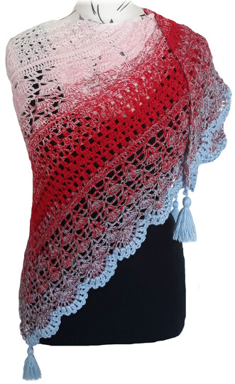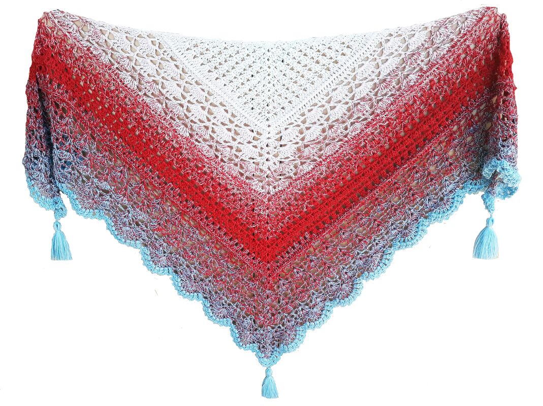 Ruby ist mein allererstes Tuch, dass ich designt habe und gleichzeitig immernoch eines der beliebtesten Tücher in meinem Shop. Ruby hat verschiedene lockere einfache Muster. Ihr braucht ein Bobbel mit mindestens 800m, 3 oder 4 fädig und Häkelnadel 3 bis 4, je nachdem wie fest oder locker ihr häkelt. Ruby ist ca 180cm x 80cm groß.