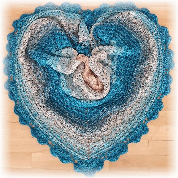 Cuddly Dream war mein erstes Tuch mit dichten Reliefmustern. Es sit schön groß und kuschelig. Ihr braucht ein Bobbel mit mindestens 1000m, 4 oder 5 fädig und Häkelnadel 4 bis 5, je nachdem wie fest oder locker ihr häkelt. Malakita ist ca 220cm x 80cm groß.