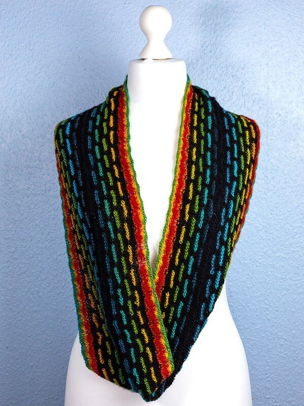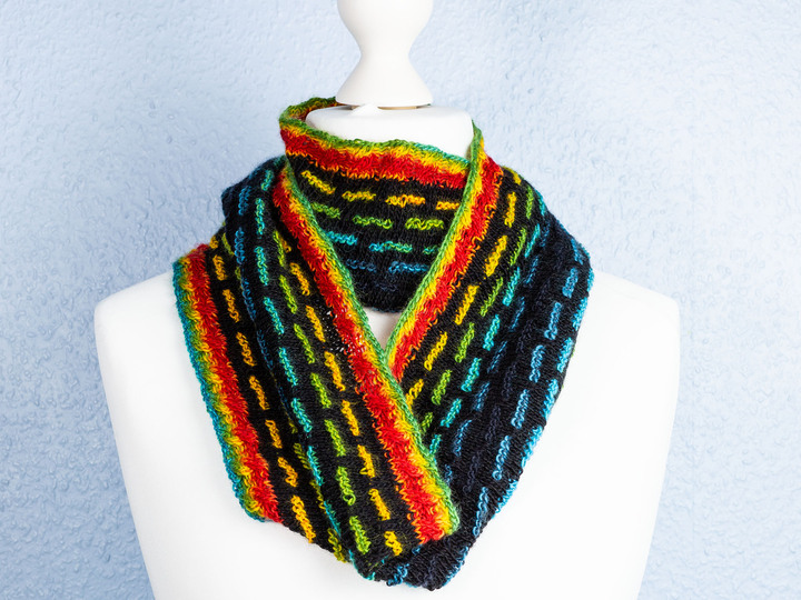 Der Loop-Schal „Kunterbunt“ ist ein kuscheliger Loop, den man in mehreren Variationen tragen kann. Er wird aus nur zwei Garnknäueln gearbeitet und ist dadurch sehr sparsam im Garnverbrauch und außerdem auch eine Möglichkeit, Restknäuel aus anderen Projekten zu verwenden.