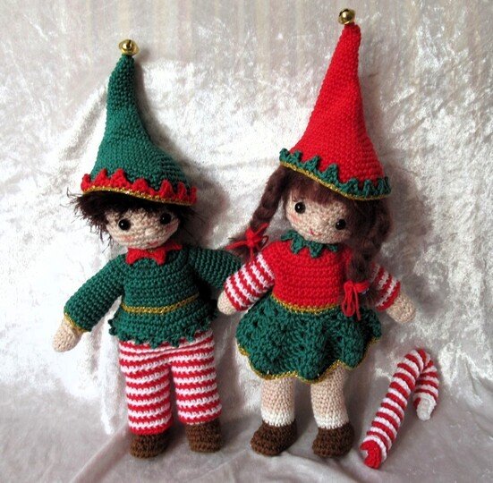 Die 19 Seiten lange, bebilderte Anleitung beinhaltet nicht nur die Beschreibung für die Puppen, sondern auch für die Kleidung und die Zuckerstange.Für den Rock von Annas kleidchen gibt es auch eine Häkelschrift.
