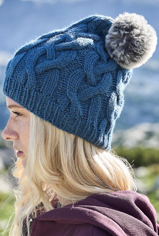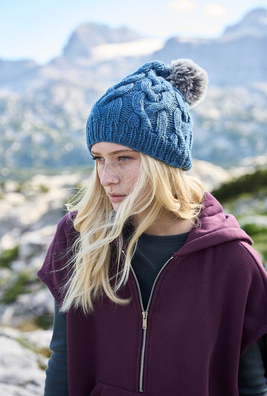 Nie mehr kalte Ohren: Die taubenblaue Mütze aus weichem Schurwoll-Alpakagarn passt sich jedem Stil an. Für das plastische Zopfmuster gibt es in der Anleitung eine übersichtliche Strickschrift, in der auch gleich die Abnahmen für die Passform eingezeichnet sind. Das Finish bildet ein Pompon, der – aus Kunstfell hergestellt – ökologischen Ansprüchen gerecht wird. Wer Zeit und Lust hat, strickt sich gleich noch eine zweite Mütze, denn das Garn gibt es in vielen attraktiven Farben.