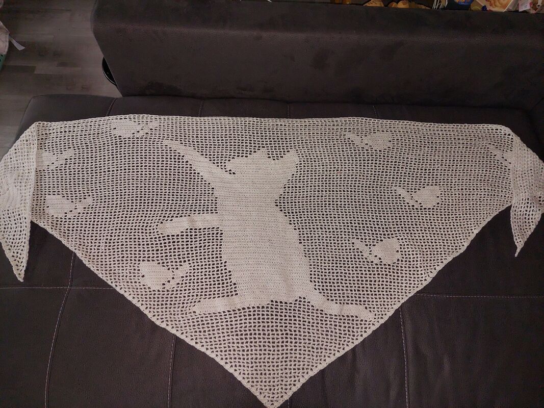 Ihr könnt selbstverständlich auch andere Bobbel / Wolle / Farbe / Nadel für das Tuch verwenden. Bitte beachtet nur, dass sich da ein anderes Maß des Tuches ergeben kann