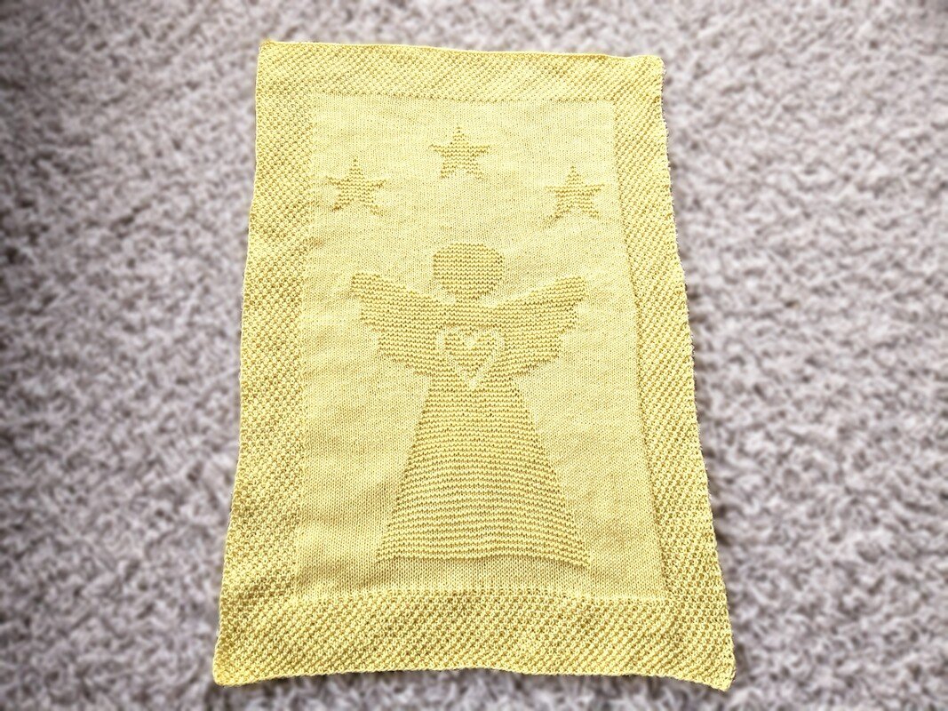 Natürlich kannst Du die Decke auch etwas größer stricken für normal große Babys, die einen Schutzengel besonders gut brauchen können.