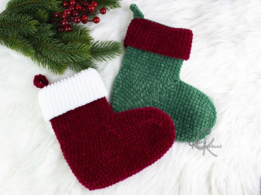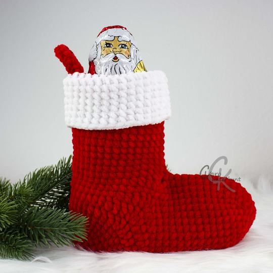 Mit der Anleitung kannst du eine Weihnachtssocke als Deko aus Chenillegarn häkeln. Sie ist das perfekte Nikolaus- oder Weihnachtsgeschenk, gefüllt mit Süßigkeiten oder kleinen Geschenken. :)