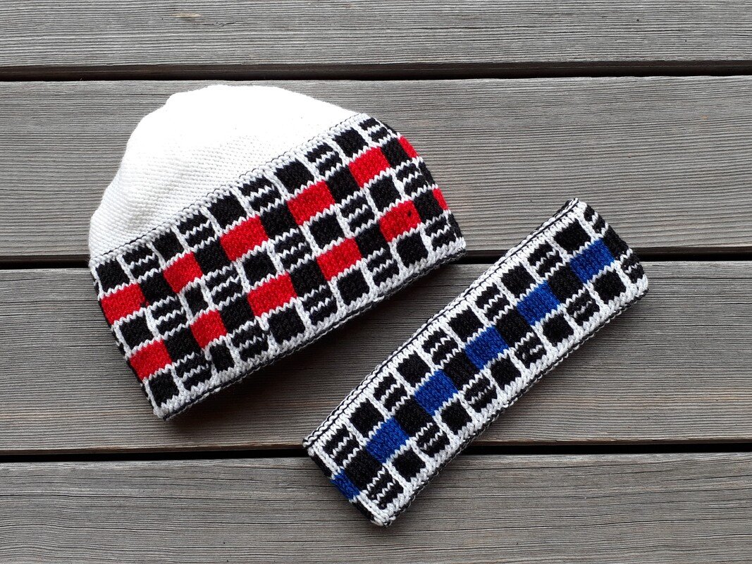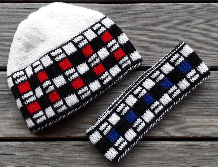 Stirnband und Mütze können in Double Face oder Fair Isle Technik (Norwegermuster) gestrickt werden. Es sind beide Anleitungen beschrieben.