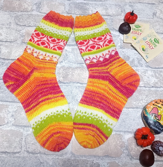 Eine Anleitung zum Stricken der fruchtig frischen Orangensocken.