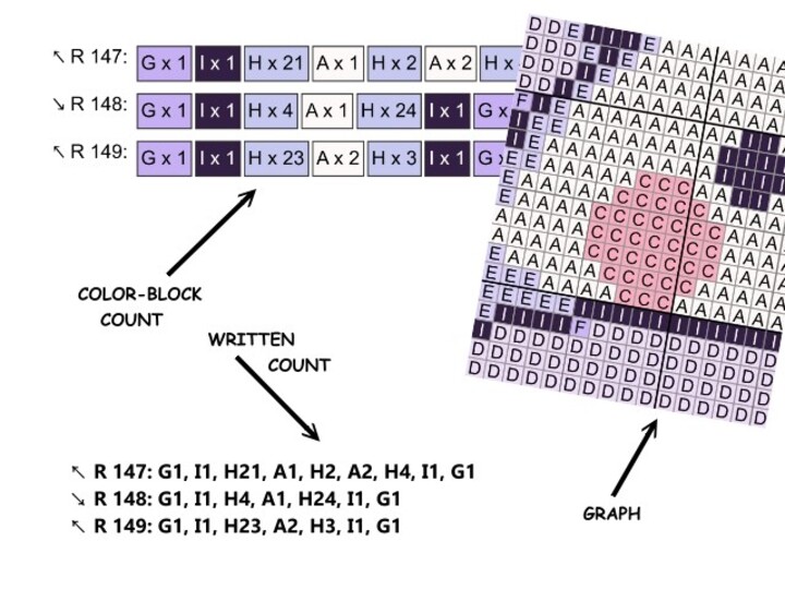 -farbige Zahlen-Blöcke für jede Zeile für C2C-Technik