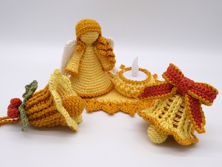 Hier findet sich die tolle Anleitung, passend zu den Glöckchen, der "Engel mit dem Teelicht und Deckchen" welche auf den Fotos zu sehen ist.