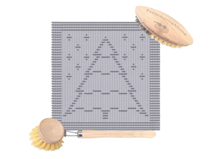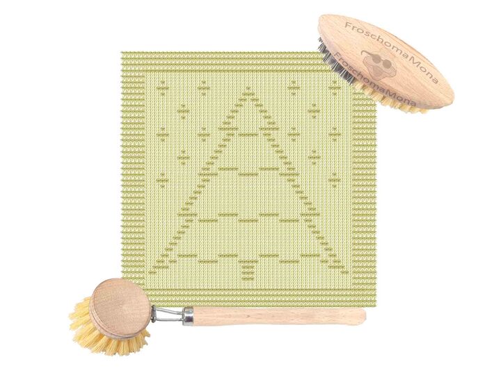So kannst du entweder nach Zählmuster oder nach schriftlicher Anleitung oder beide in Verbindung verwenden, wenn du das Spültuch strickst.