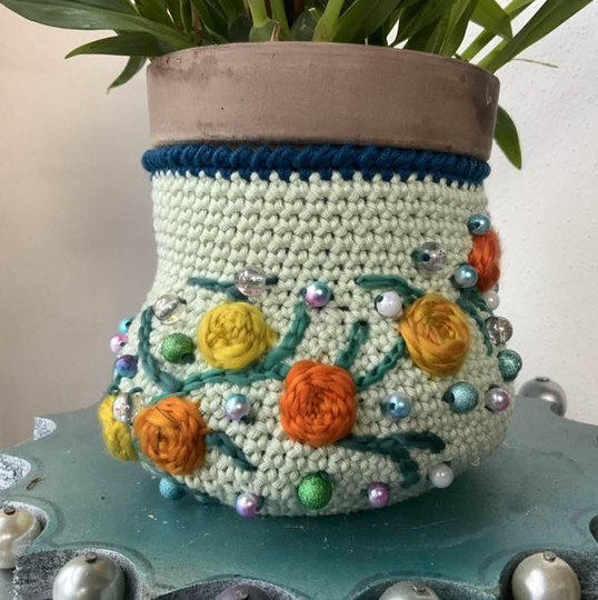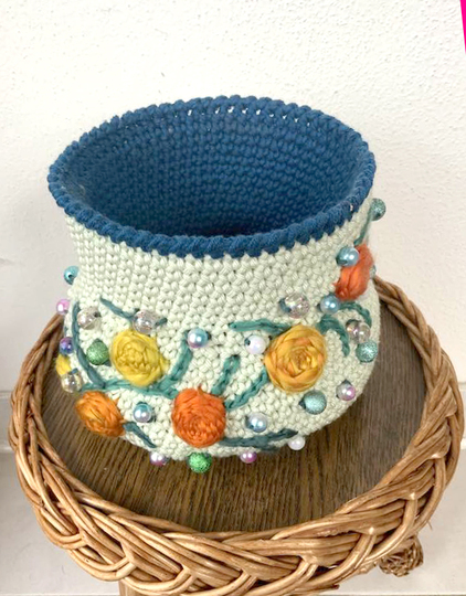 Kleinere Mengen von fertigenVase + Utensilo+ Übertopf Blümchen (bis 5 Stück)...dürfen mit Hinweis auf die Designerin (Petra Perle) auf Weihnachtsmärkten und Handarbeitsmärkten gerne verkauft werden!!! Bitte NICHT zu billig sein!
