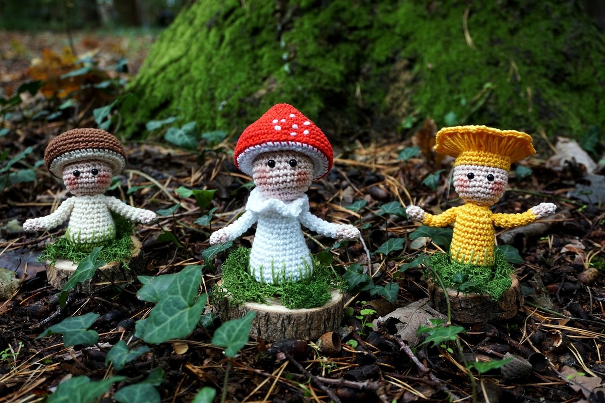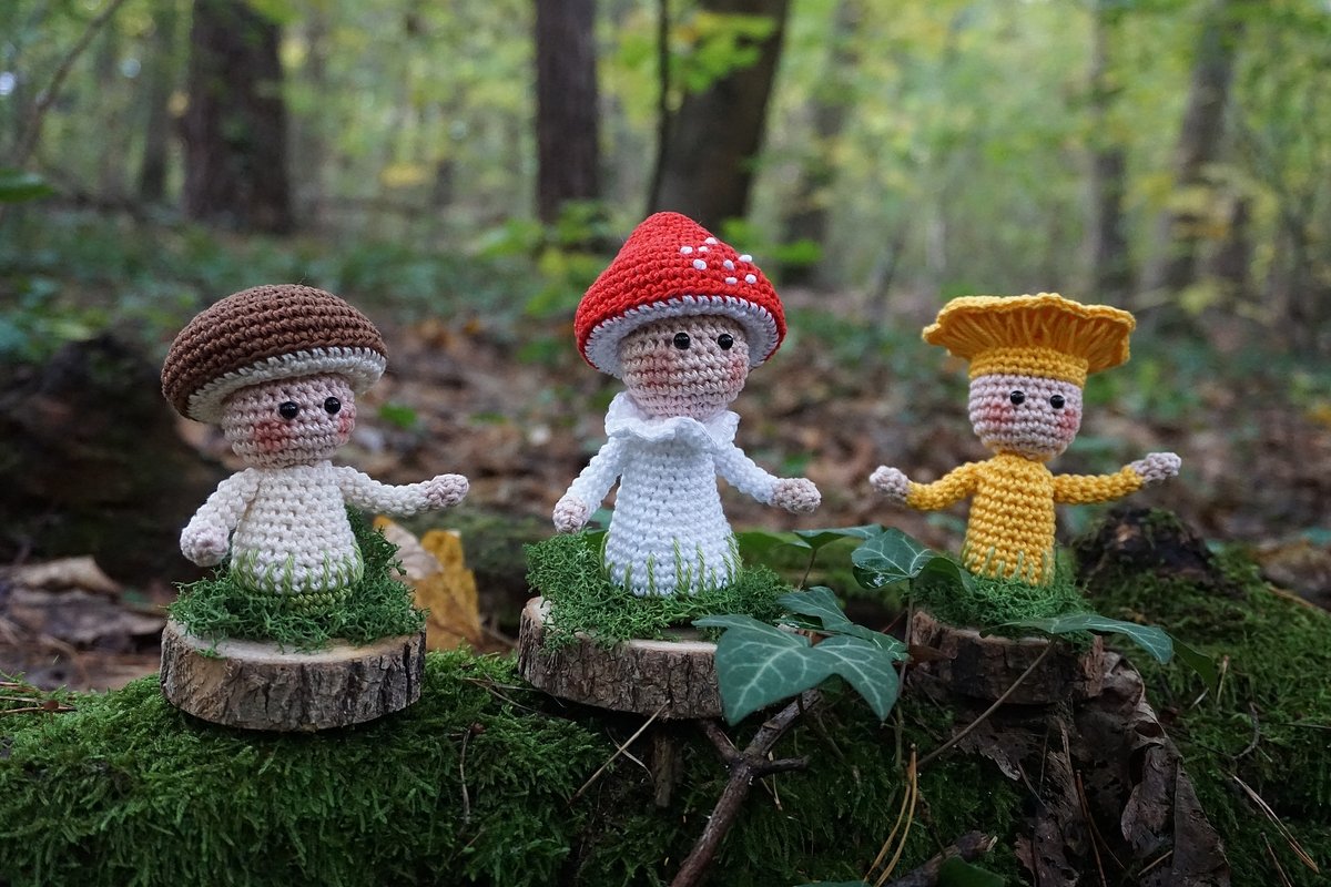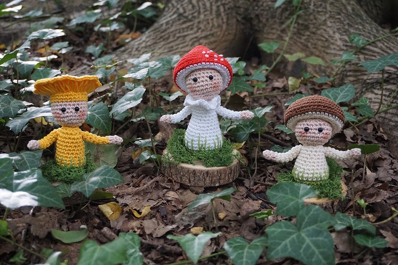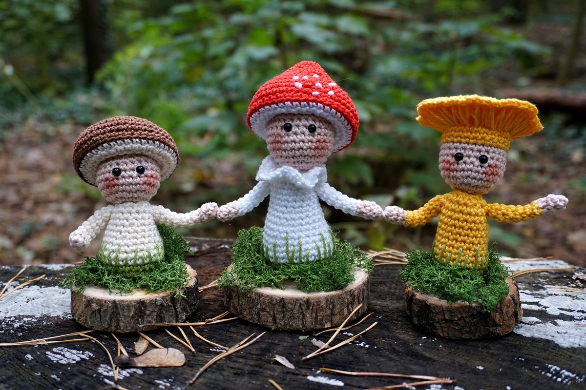 Mit etwas Glück kann man bei einem herbstlichen Waldspaziergang zauberhafte Waldbewohner wie die drei kleinen Pilze entdecken. Ob Marone, Fliegenpilz oder Pfifferling…durch den Regen an den Füßen und der Sonne am Himmel recken sie ihre Köpfe neugierig aus der Erde.