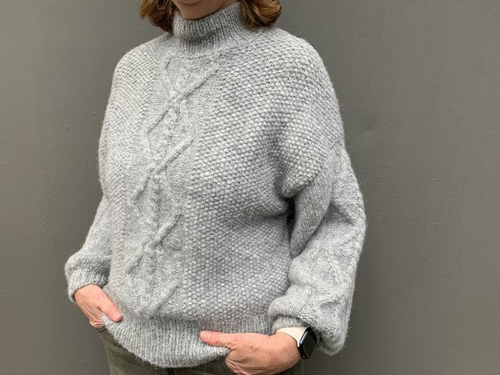 Dieser wunderschöne gestrickte Strickpullover ist ein absolutes Must-Have für die kalten Tage. Mit seinem hochgeschlossenen Halsbündchen und den langen Ballonärmeln verleiht er dir einen trendigen Look. Die langen Bündchen sorgen für eine bequeme Passform und halten dich warm. Der Pullover wurde von unten nach oben gestrickt und besticht durch ein ansprechendes Zopfmuster, das ihm eine einzigartige Textur verleiht. Hergestellt aus weicher Alpacawolle, bietet er ein unglaublich angenehmes Tragegefühl. Dieser dicke Pullover hält dich zuverlässig warm und ist gleichzeitig ein modisches Statement. Egal, ob du ihn zu Jeans oder einer schicken Hose kombinierst, dieser Pullover wird dich mit seinem Komfort und seinem stilvollen Design begeistern.
